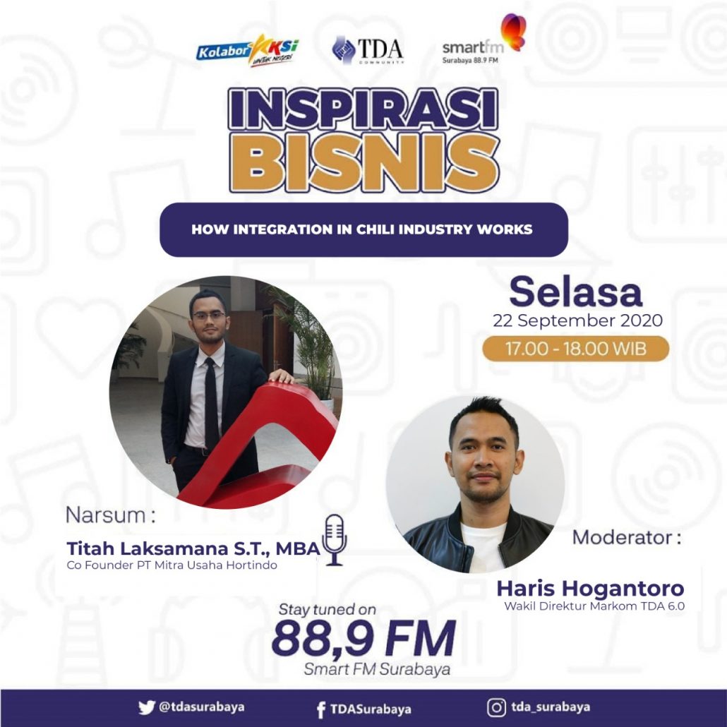 ” INSIPRASI BISNIS “ ” How intergration in chili industry works “ By : SmartFM & TDA Surabaya Indonesia dikenal dengan sumber daya alam yang luar biasa terutama dari sektor yang dekat sumber daya alam yaitu pertanian. Untuk saat ini indonesia masih berusaha meningkatkan produktivitas sektor pertanian, terutama tanaman cabai Cabai merupakan salah satu produk hortikultura […]