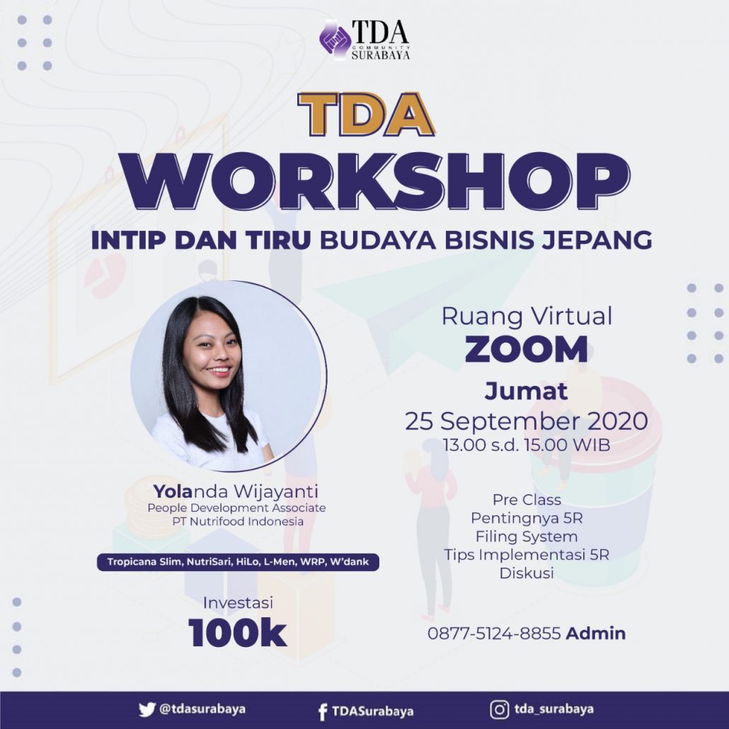 ” Workshop “ ” Intip dan tiru budaya kerja perusahaan jepang “ By: Yolanda Wijayanti Komunitas Tangan Diatas (TDA) adalah sebuah komunitas wirausaha terbesar di Indonesia. Hadir di 5 negara, 15 wilayah dan 61 daerah termasuk di Surabaya. TDA Surabaya secara rutin mengadakan beragam kegiatan bisnis, baik teknis maupun non teknis guna mengembangkan kapasitas bisnis anggotanya. […]