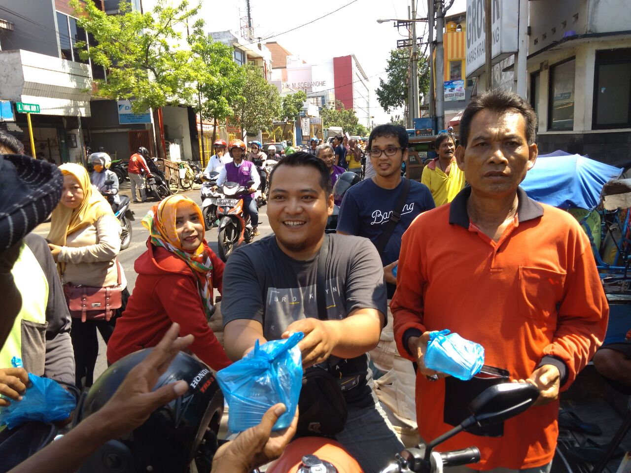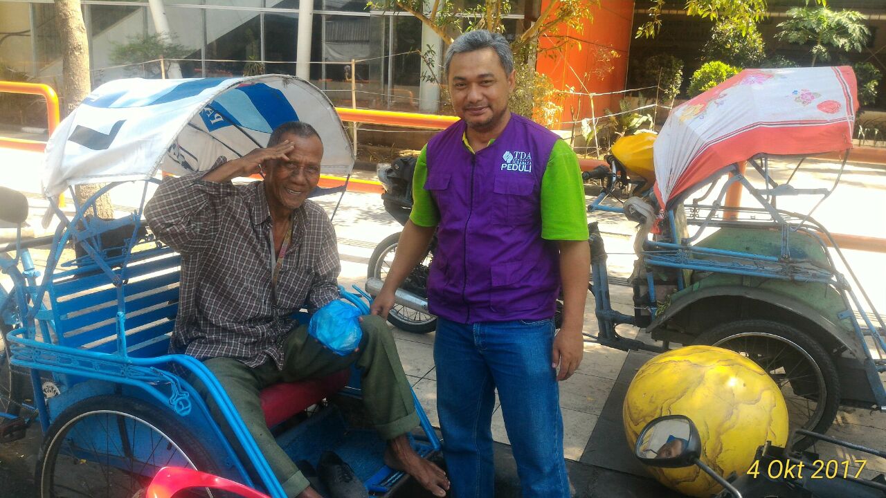 Pada hari/tanggal Rabu, 04 Oktober 2017 TDA Peduli Surabaya telah membagikan sebanyak 250 nasi bungkus kepada para PKL, sopir angkot, tukang sampah, fakir miskin dan abang becak. Selain itu, kali ini lokasi yang di pilih salah satunya adalah Jl Tambakrejo dan Jl Kapas yang merupakan salah satu kawasan padat penduduk di wilayah Surabaya Timur. Tentunya di sekitar JL. Tambak Rejo dan JL. Kapasan banyak ditemui sodara-sodari kita yang membutuhkan bantuan tangan kita. Bahkan tidak jarang mereka rela menahan lapar karena uang yang ada digunakan untuk biaya kehidupan kurang tercukupi.dengan adanya TDA Peduli ini merupakan bentuk upaya untuk meringankan beban mereka merasakan apa yang kita miliki saat ini dan merasakan bagaimana senyuman yg tercurah dari wajah penduduk.